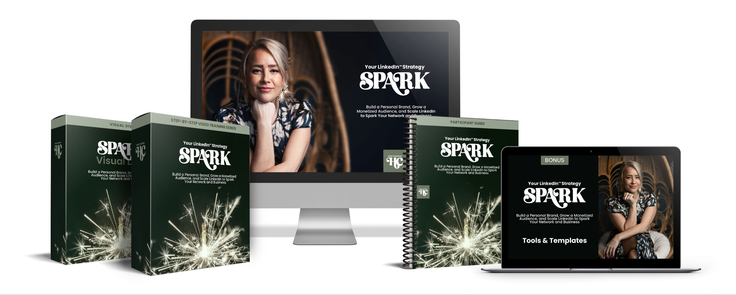 Spark: Your LinkedIn™ Strategy Masterclass Cohort is a 6-week live masterclass designed to help you scale your presence on LinkedIn™ with both personalized 1:1 guidance and the support of a small group cohort.